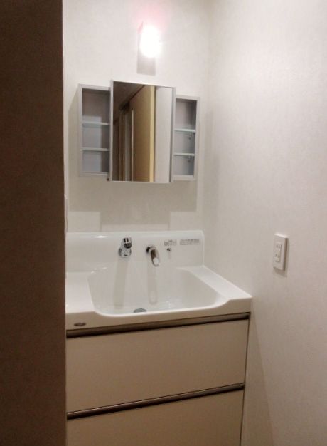 改修前はLDKに隣接した勝手口だったくぼみの部分に、新しく洗面コーナーを設けました。
