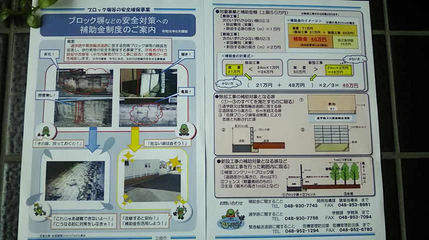 三郷市ブロック塀等安全確保事業補助金です。